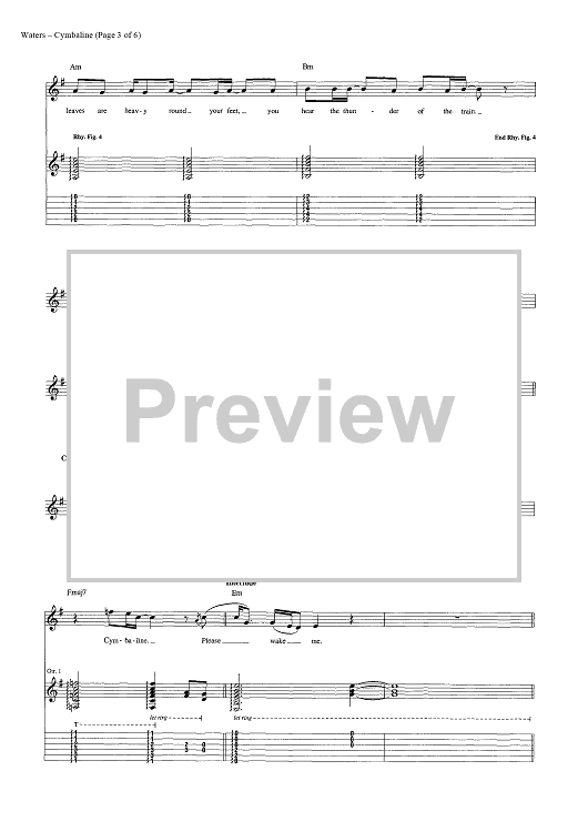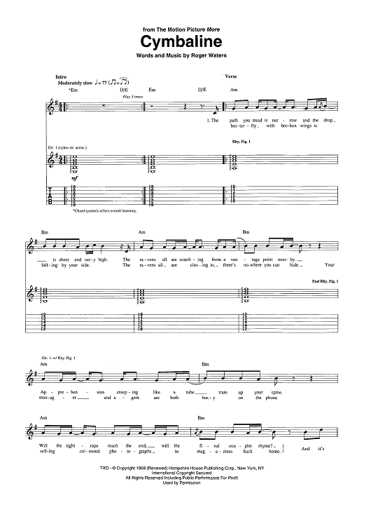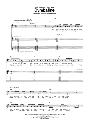 Digital Sheet Music for Cymbaline by Pink Floyd, Roger Waters scored for Guitar Tab/Vocal/Chords; id:444883