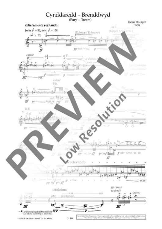"Cynddaredd – Brenddwyd" Sheet Music by Heinz Holliger