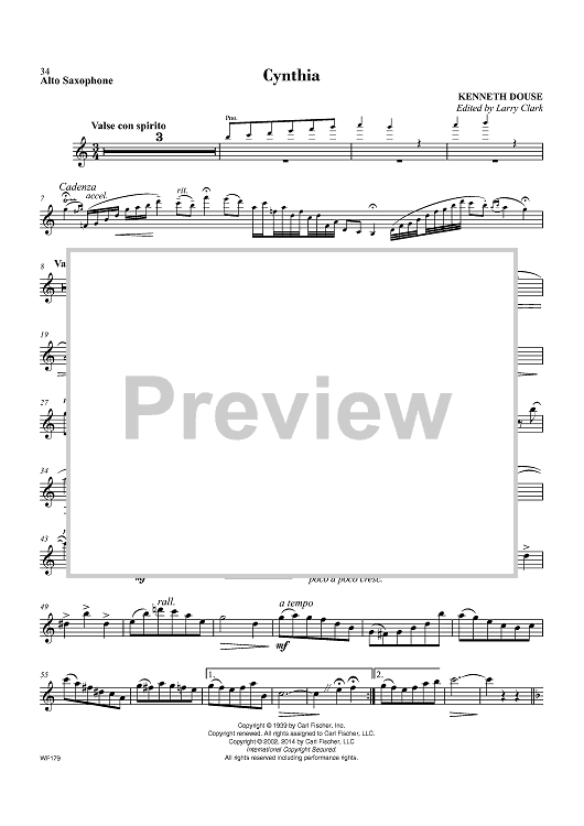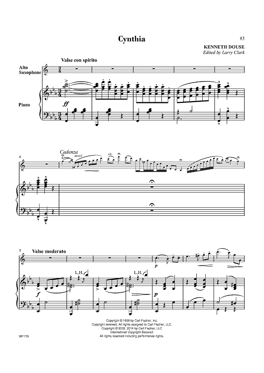 Digital Sheet Music for Cynthia by Kenneth Douse scored for Eb Alto Sax/Piano; id:451685