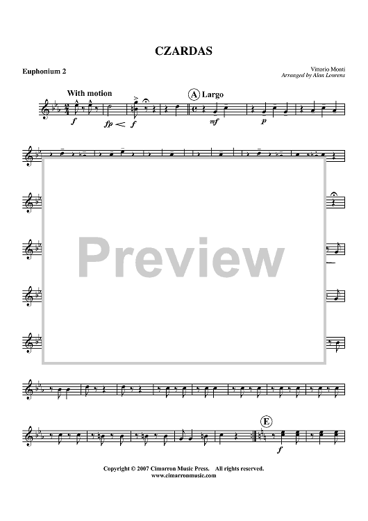 "Czardas - Euphonium 2 BC/TC" Sheet Music by Vittorio Monti