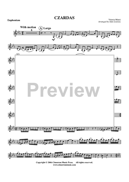 Digital Sheet Music for Czardas - Euphonium BC/TC by Vittorio Monti, Alan Lourens scored for Euphonium/Piano; id:357375