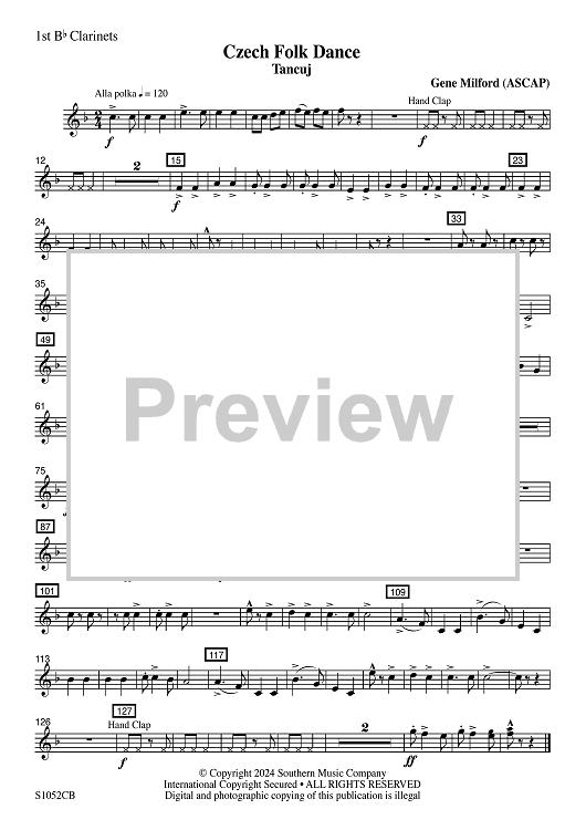 Digital Sheet Music for Czech Folk Dance: Tancuj - 1st Bb Clarinets by Gene Milford, Jeremy S. Martin scored for Concert Band; id:506323