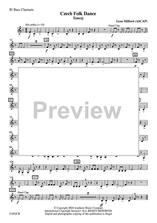 Digital Sheet Music for Czech Folk Dance: Tancuj - Bb Bass Clarinets by Gene Milford, Jeremy S. Martin scored for Concert Band; id:506325