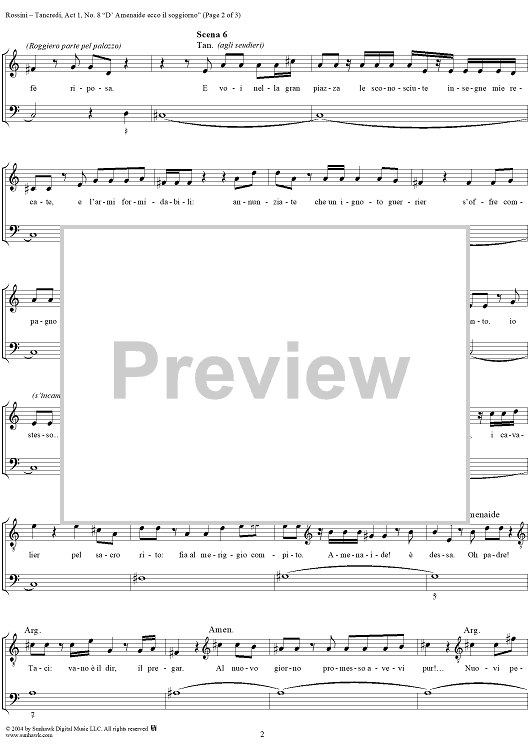 Digital Sheet Music for D' Amenaide ecco il soggiorno: No. 8 from "Tancredi", Act 1, Scene 5 - Score by Gioachino Rossini scored for Voice/Piano; id:302871