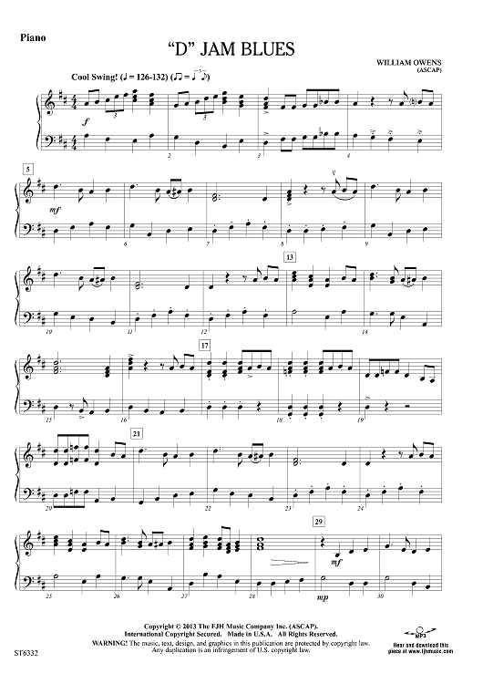 ""D" Jam Blues - Piano" Sheet Music by William Owens