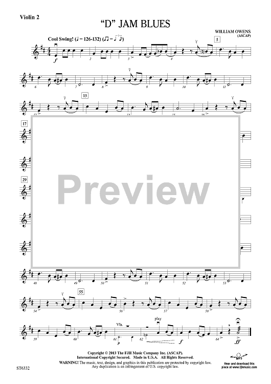 Digital Sheet Music for "D" Jam Blues - Violin 2 by William Owens scored for String Orchestra; id:437167