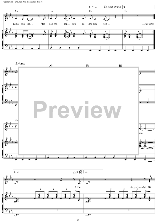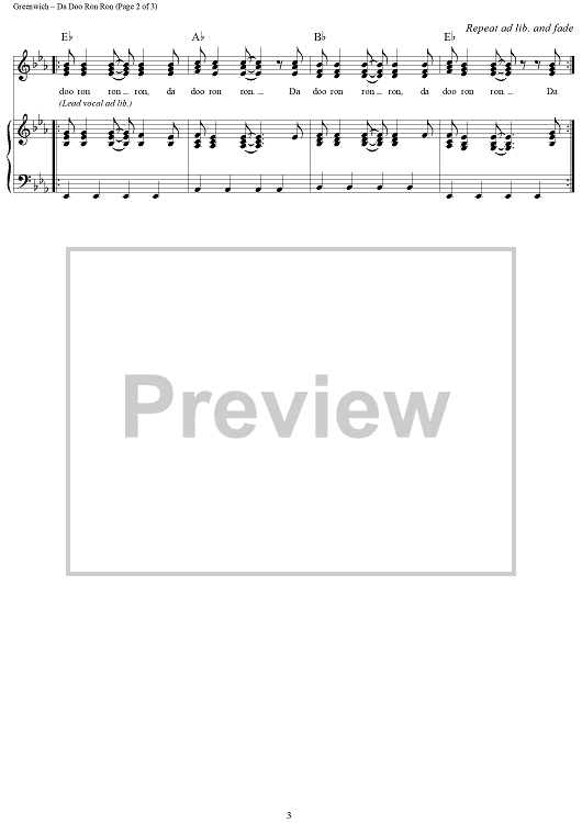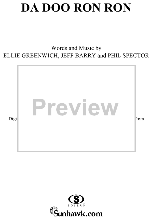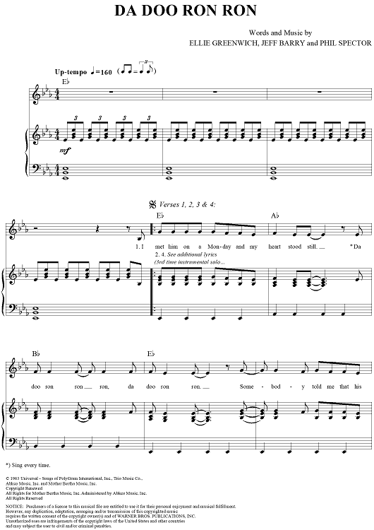 Digital Sheet Music for Da Doo Ron Ron by Phil Spector, Jeff Barry, Ellie Greenwich, The Crystals scored for Piano/Vocal/Chords; id:297213