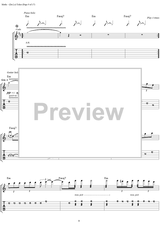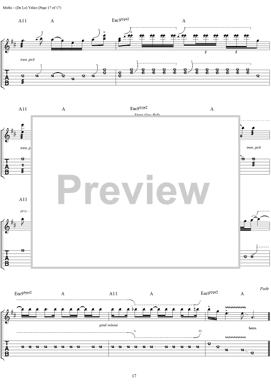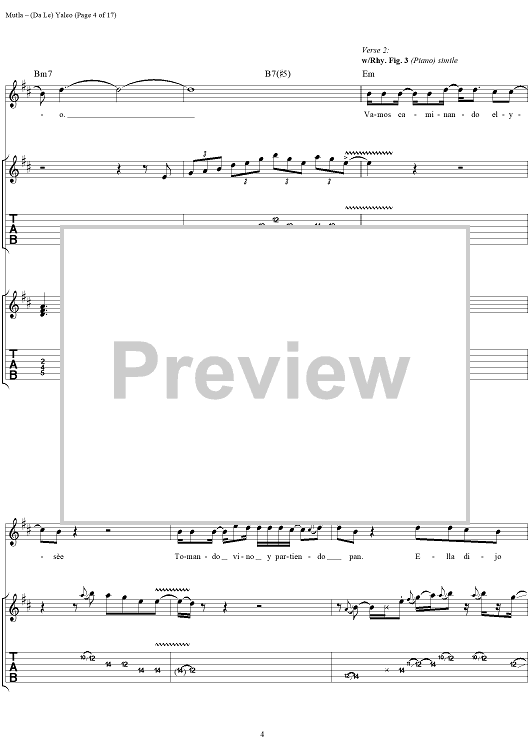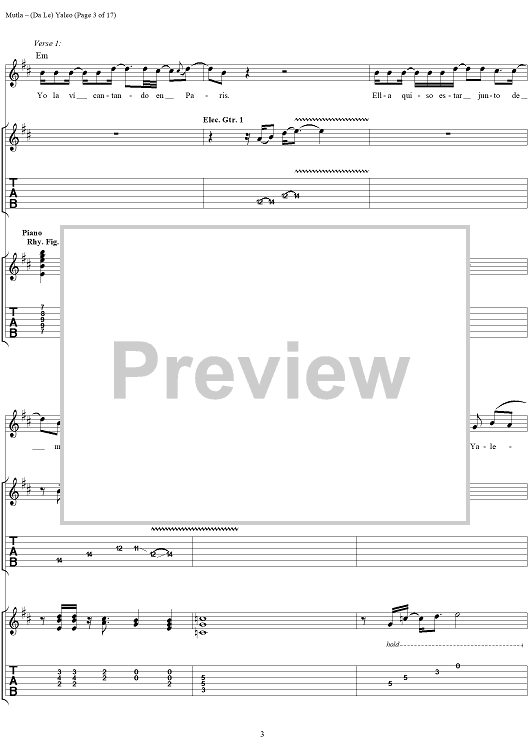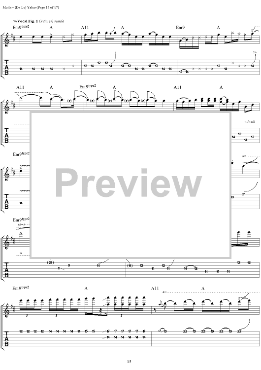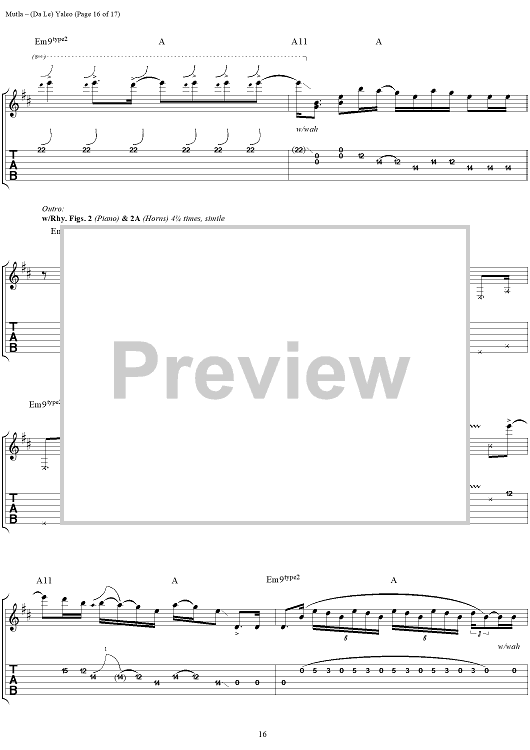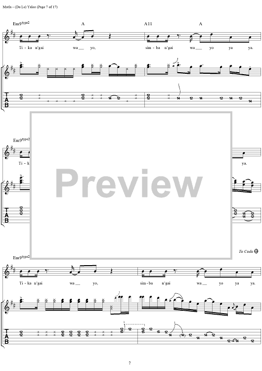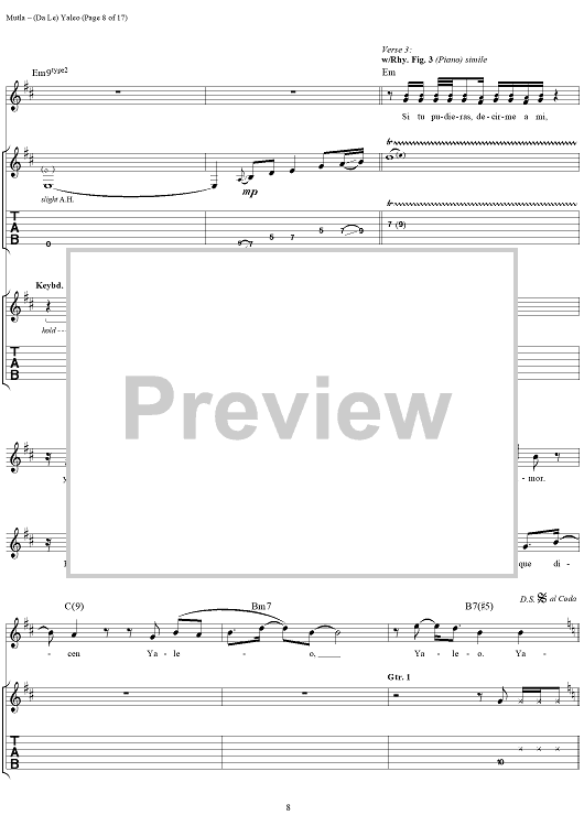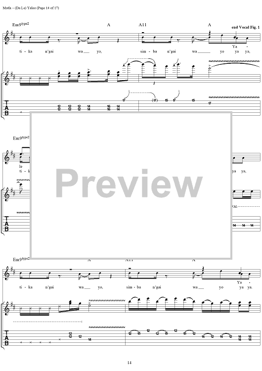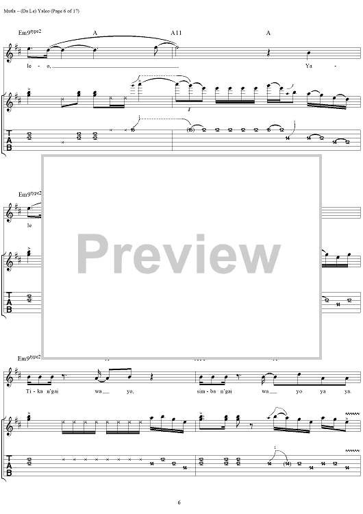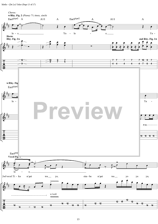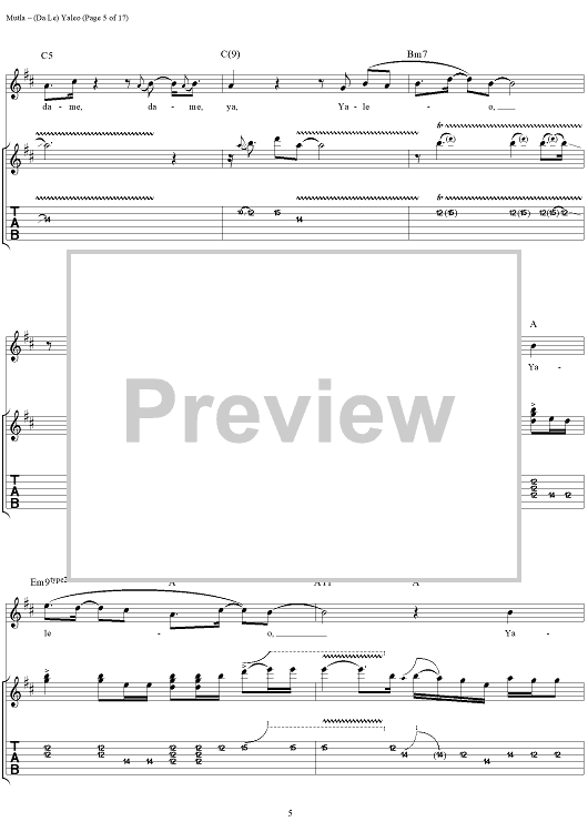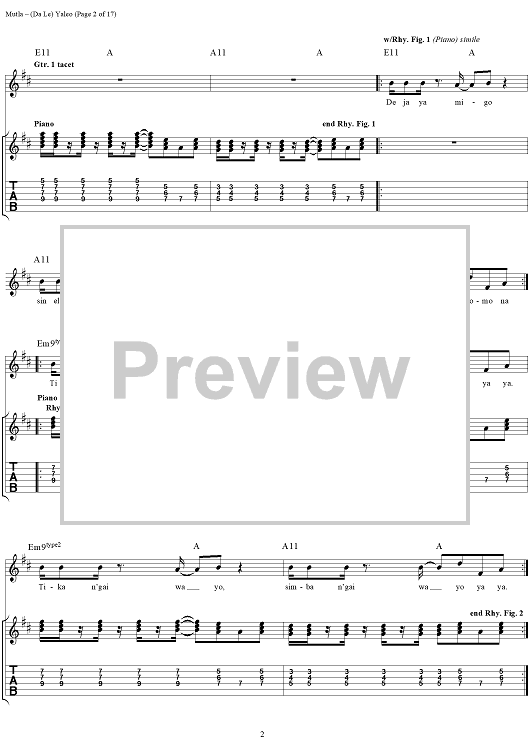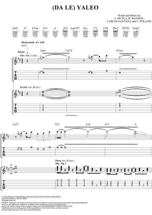 Digital Sheet Music for (Da Le) Yaleo by Carlos Santana, C. Polloni, S. Mutla, H. Bastien, Shaka Ra scored for Guitar Tab/Vocal; id:234987
