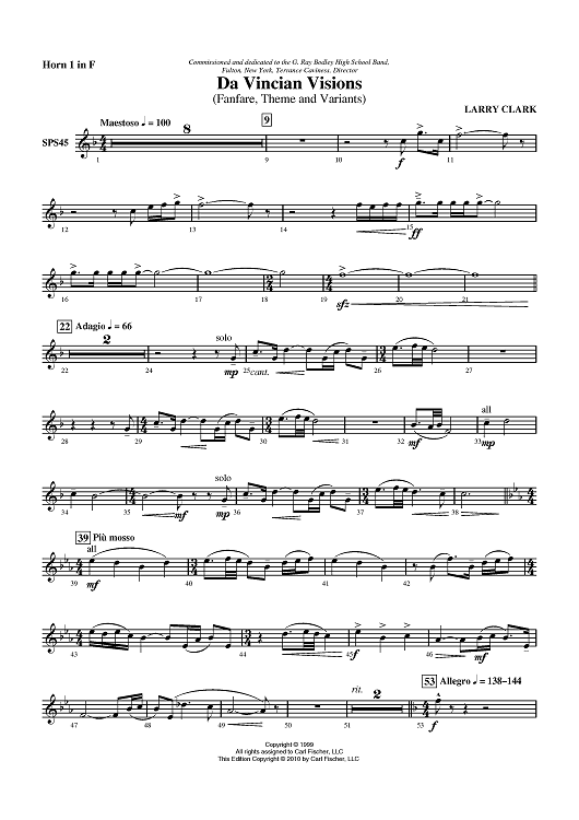 "Da Vincian Visions (Fanfare, Theme and Variants) - Horn 1 in F" Sheet Music by Larry Clark