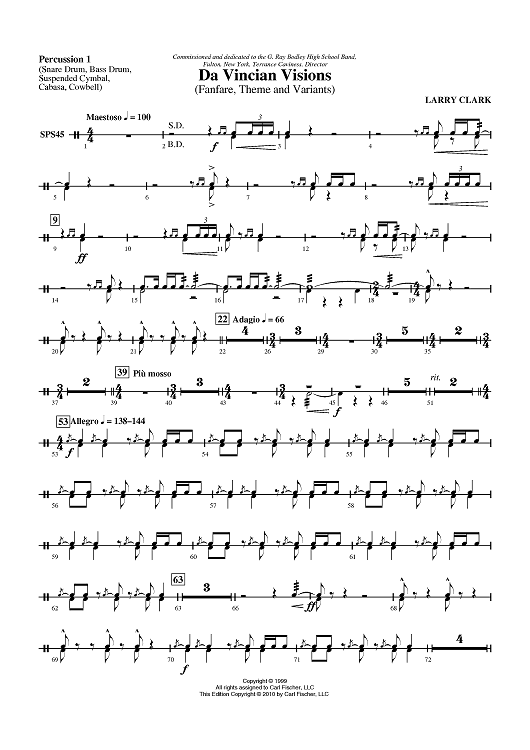 "Da Vincian Visions (Fanfare, Theme and Variants) - Percussion 1" Sheet Music by Larry Clark