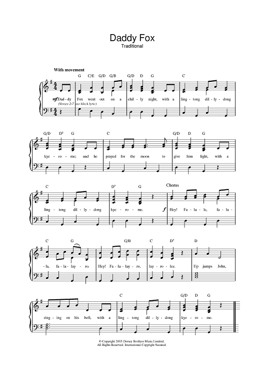 Digital Sheet Music for Daddy Fox by scored for Piano/Vocal/Chords; id:386128