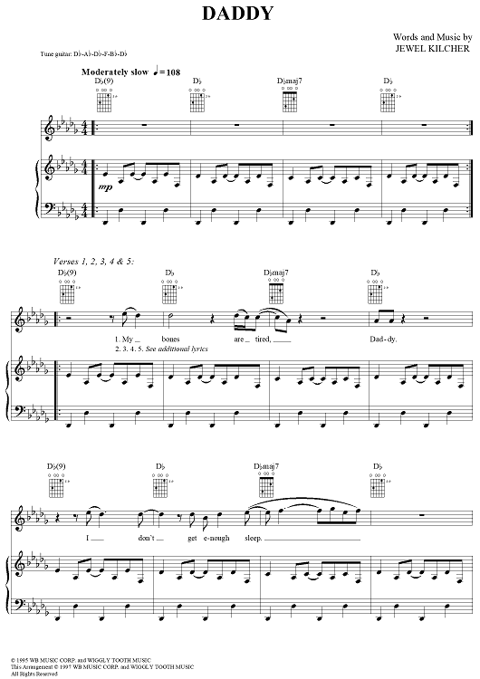 Digital Sheet Music for Daddy by Jewel, Jewel Kilcher scored for Piano/Vocal/Chords; id:311748
