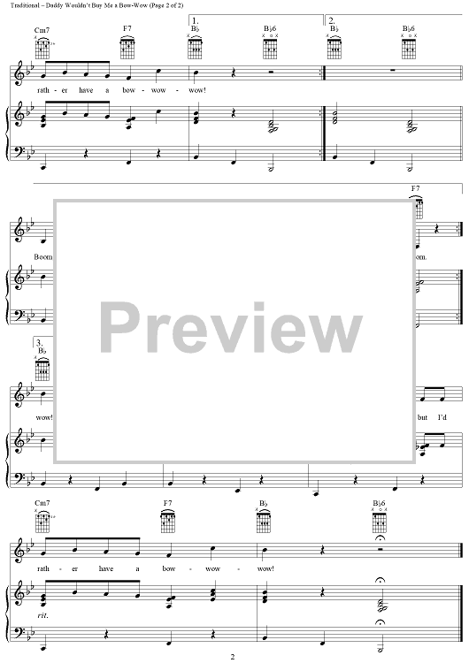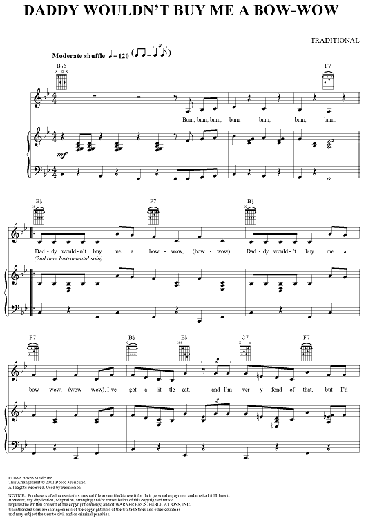 Digital Sheet Music for Daddy Wouldn't Buy Me a Bow-Wow by Traditional scored for Piano/Vocal/Chords; id:289002