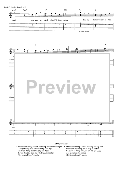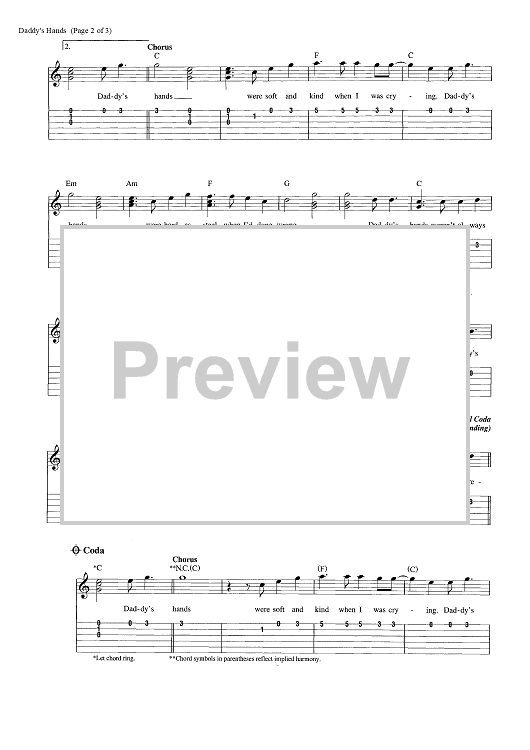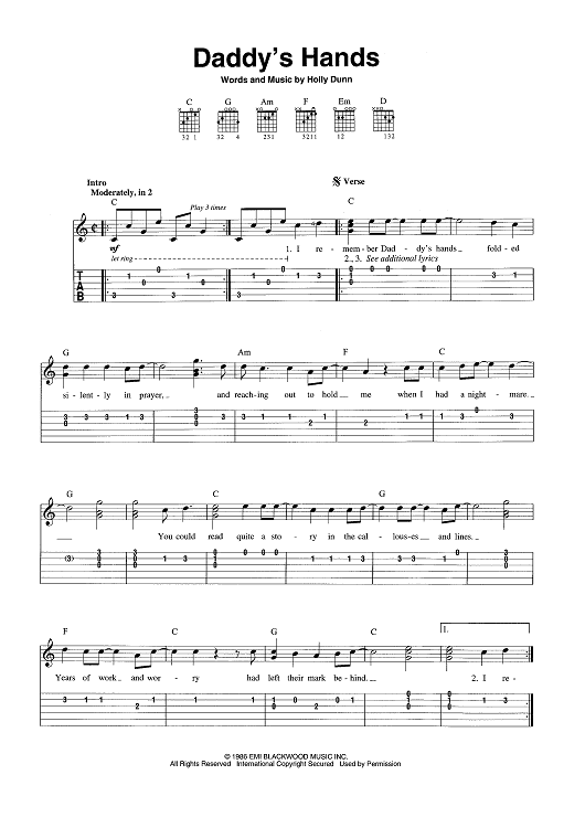 Digital Sheet Music for Daddy's Hands by Holly Dunn scored for Easy Guitar Tab/Vocal/Chords; id:456697