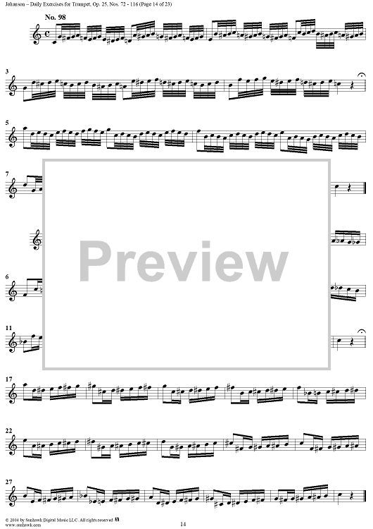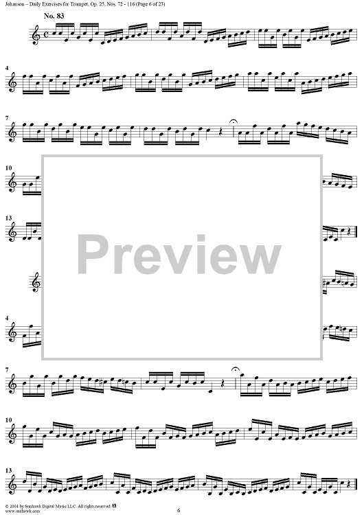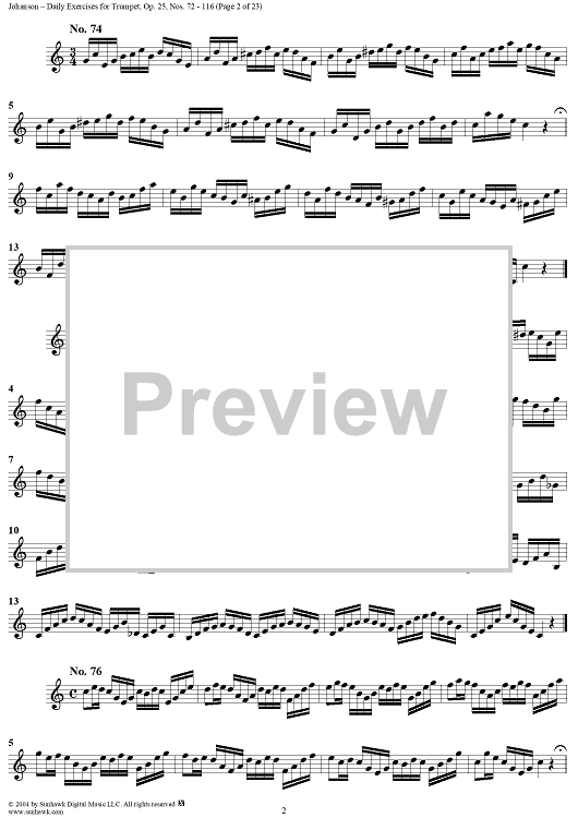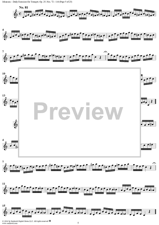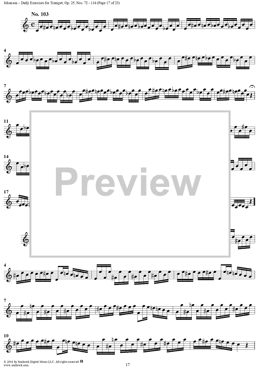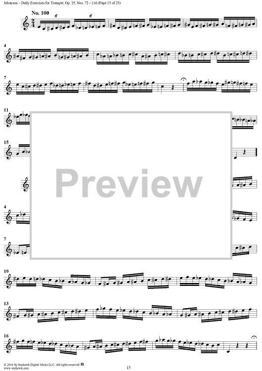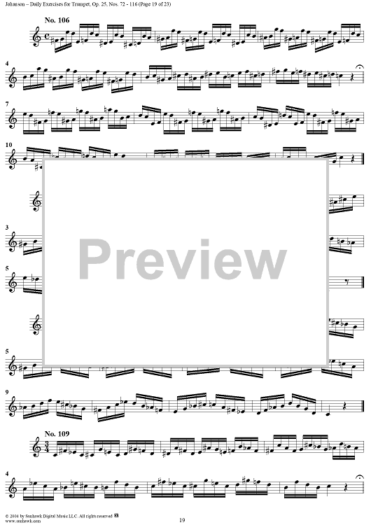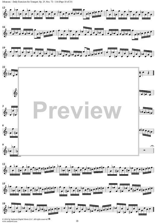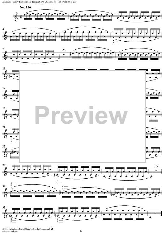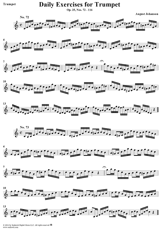 Digital Sheet Music for Daily Exercises for Trumpet, Op. 25: Nos. 72-116 by August Johanson scored for Trumpet; id:303644