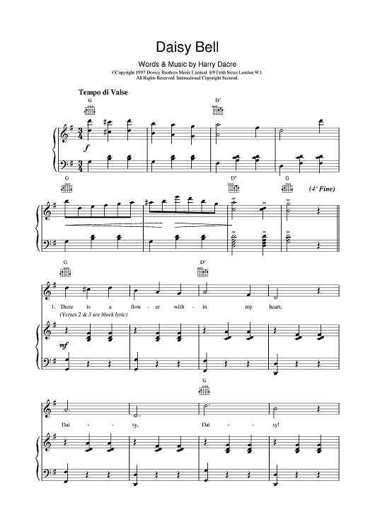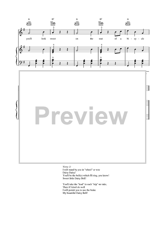 Digital Sheet Music for Daisy Bell by Harry Dacre, William Bolcom scored for Piano/Vocal/Chords; id:380274