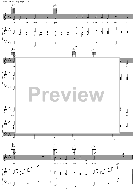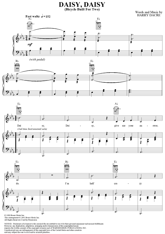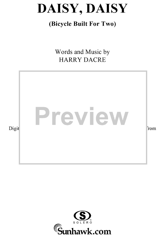 Digital Sheet Music for Daisy, Daisy by Harry Dacre scored for Piano/Vocal/Chords; id:289003