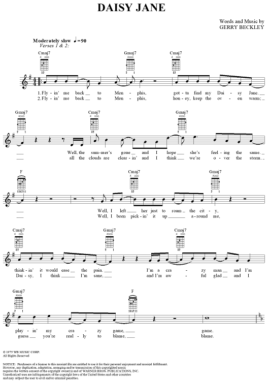 Digital Sheet Music for Daisy Jane by America, Gerry Beckley scored for Easy Guitar/Vocal; id:288436