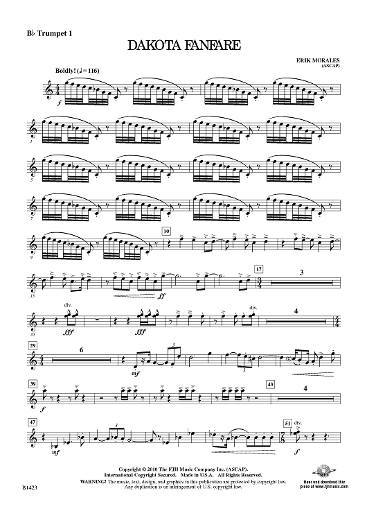 Digital Sheet Music for Dakota Fanfare - Bb Trumpet 1 by Erik Morales scored for Symphonic Band; id:415525