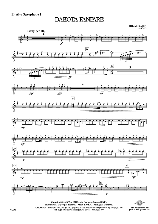 Digital Sheet Music for Dakota Fanfare - Eb Alto Sax 1 by Erik Morales scored for Symphonic Band; id:415521