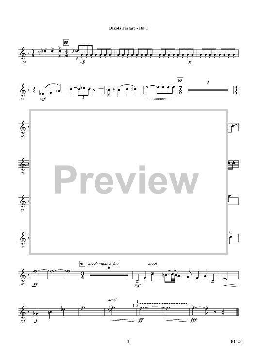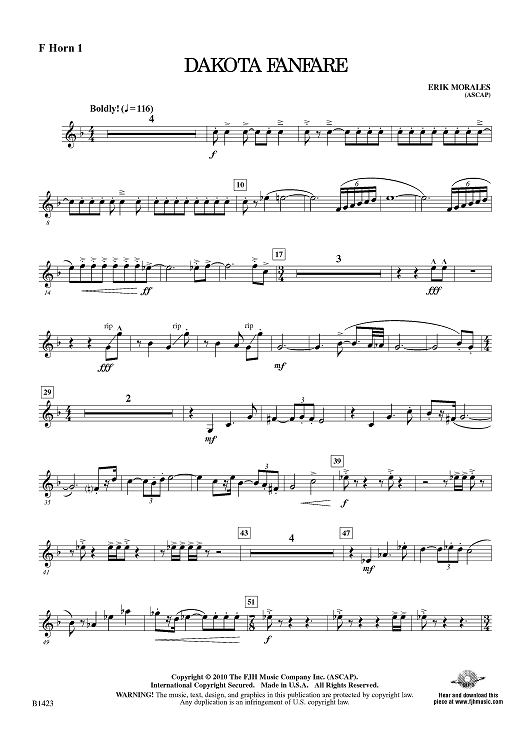 Digital Sheet Music for Dakota Fanfare - F Horn 1 by Erik Morales scored for Symphonic Band; id:415528