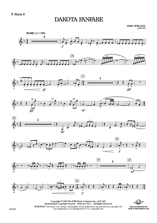 Digital Sheet Music for Dakota Fanfare - F Horn 4 by Erik Morales scored for Symphonic Band; id:415531