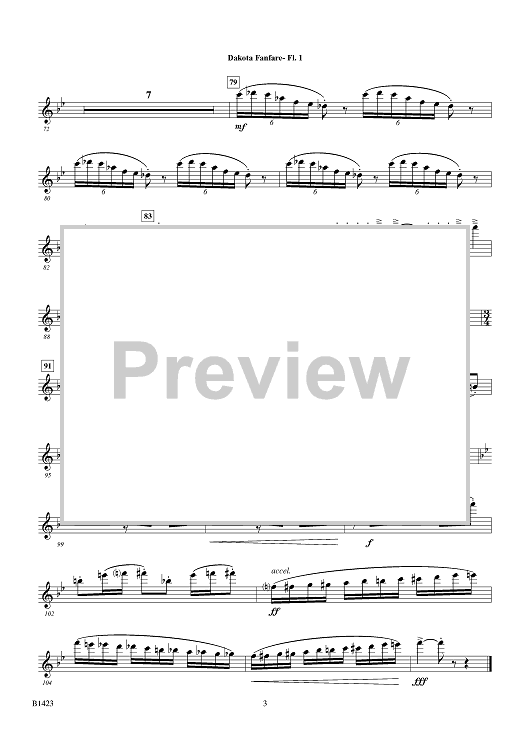Digital Sheet Music for Dakota Fanfare - Flute 1 by Erik Morales scored for Symphonic Band; id:415511