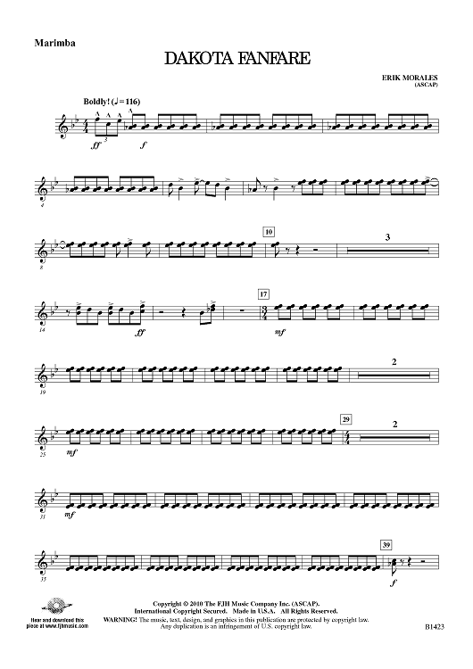 Digital Sheet Music for Dakota Fanfare - Marimba by Erik Morales scored for Symphonic Band; id:415542