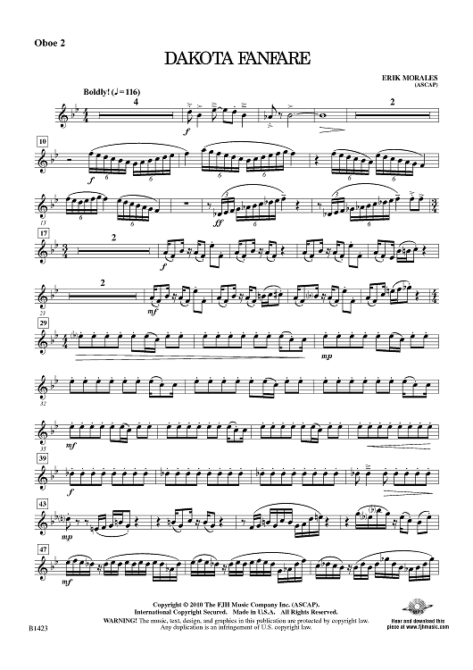 "Dakota Fanfare - Oboe 2" Sheet Music by Erik Morales