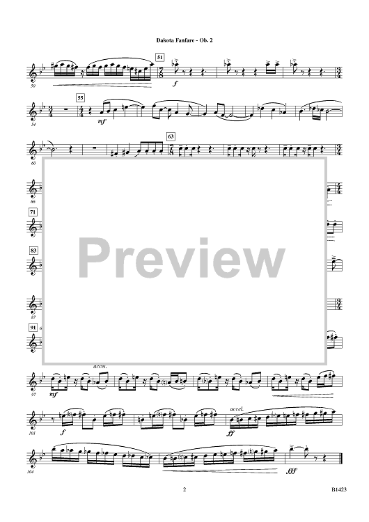 Digital Sheet Music for Dakota Fanfare - Oboe 2 by Erik Morales scored for Symphonic Band; id:415514