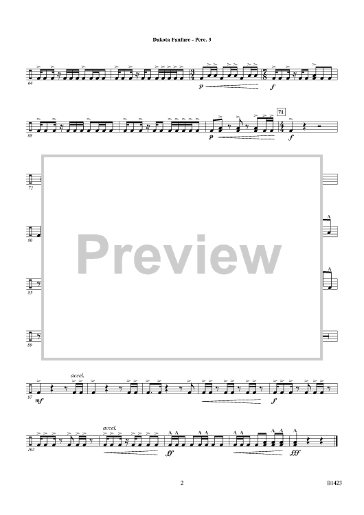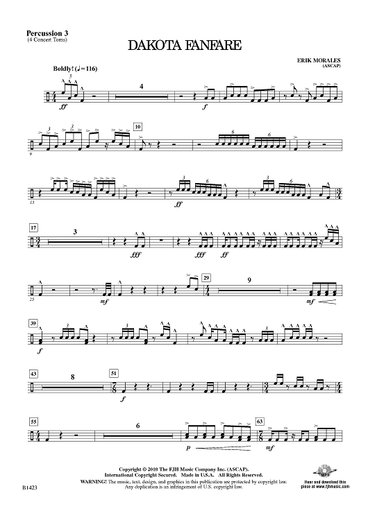 Digital Sheet Music for Dakota Fanfare - Percussion 3 by Erik Morales scored for Symphonic Band; id:415545