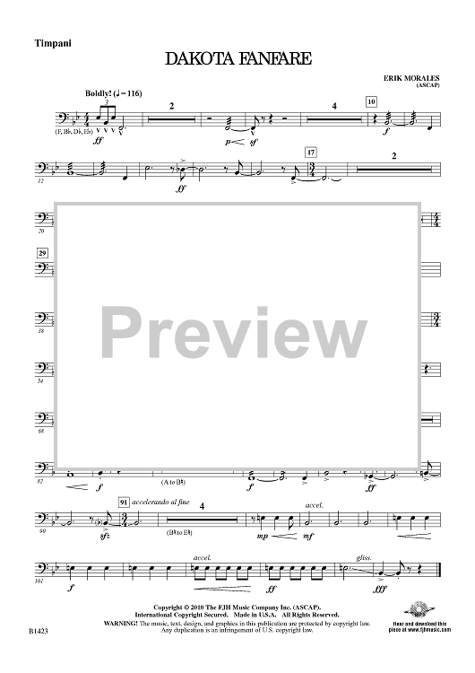 Digital Sheet Music for Dakota Fanfare - Timpani by Erik Morales scored for Symphonic Band; id:415540