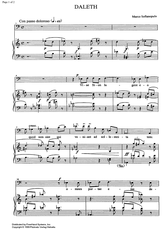 Digital Sheet Music for Daleth by Marco Sofianopulo scored for Baritone/Organ or Piano; id:334331