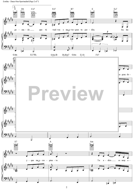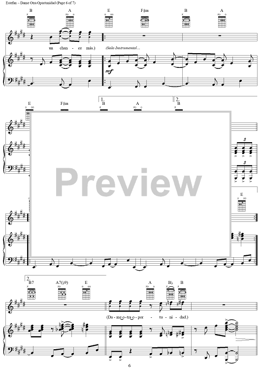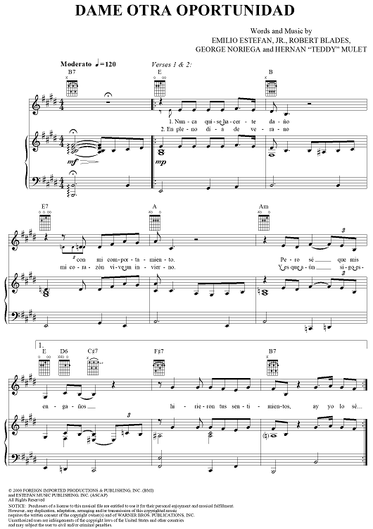 Digital Sheet Music for Dame Otra Oportunidad by Gloria Estefan, George Noriega, Robert D. Blades, Emilio Estefan Jr., Hernan "Teddy" Mulet scored for Piano/Vocal/Chords; id:286374