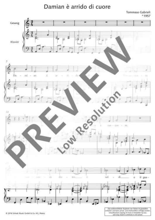 Digital Sheet Music for Damian by Tommaso Gabrieli scored for Soprano (tenor) And Piano; id:490776