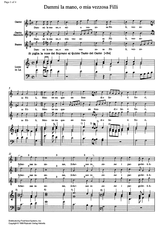 "Dammi la mano, o mia vezzosa Filli" Sheet Music by Alessandro Orologio