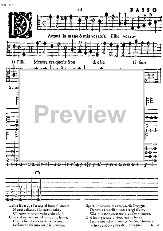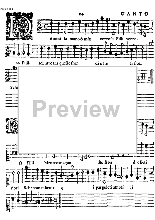 Digital Sheet Music for Dammi la mano, o mia vezzosa Filli by , Alessandro Orologio scored for 2 Sopranos/Bass/Lute; id:331257