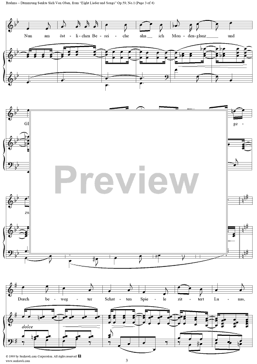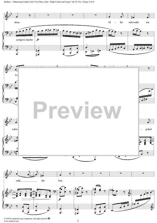 "Dämmrung senkte sich von oben - No. 1 from "Eight Lieder and Songs" Op. 59" Sheet Music by Johannes Brahms