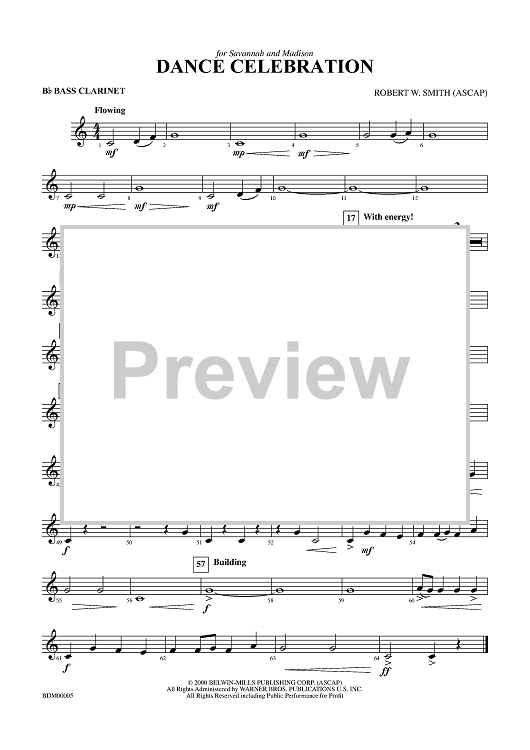 "Dance Celebration - B-flat Bass Clarinet" Sheet Music by Robert W. Smith