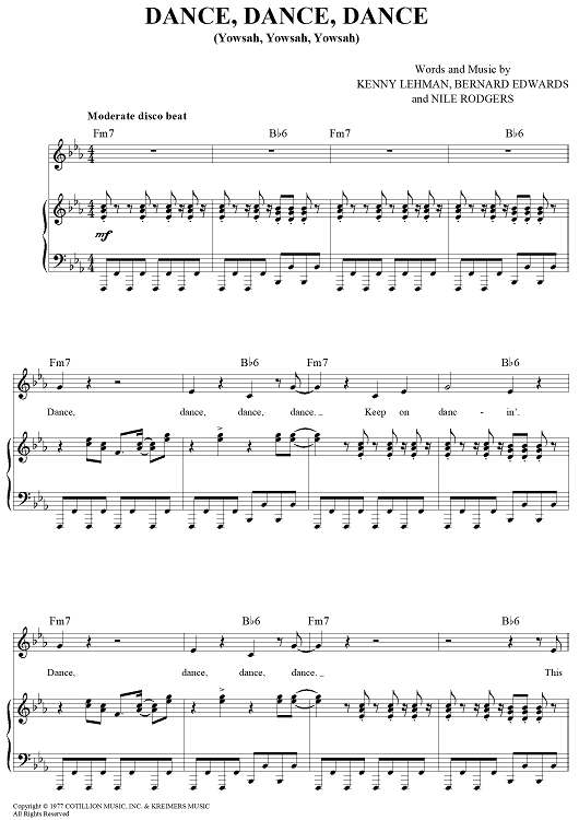 Digital Sheet Music for Dance, Dance, Dance (Yowsah, Yowsah, Yowsah) by Nile Rodgers, Bernard Edwards, Chic, Kenny Lehman scored for Piano/Vocal/Chords; id:363966