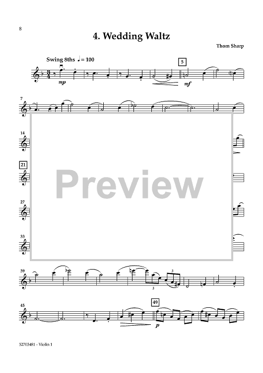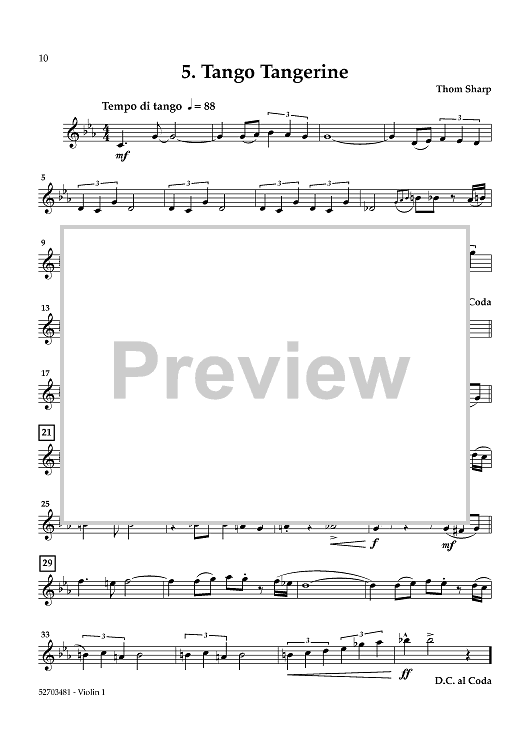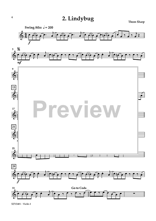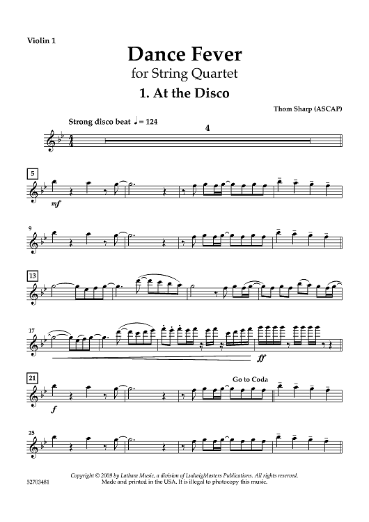 Digital Sheet Music for Dance Fever - Violin 1 by Thom Sharp scored for String Quartet; id:464148