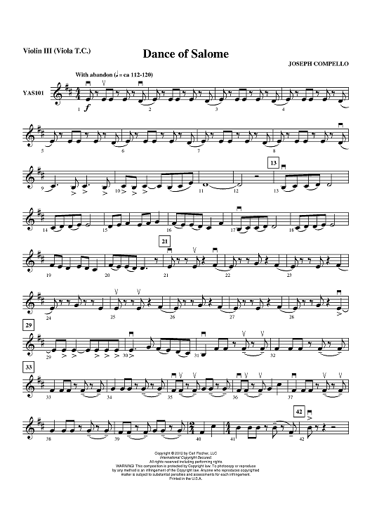 "Dance of Salome - Violin 3 (Viola T.C.)" Sheet Music by Joseph Compello