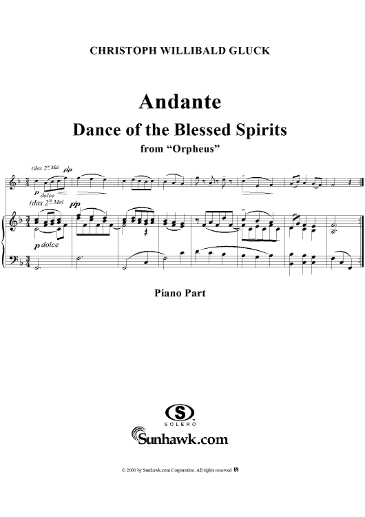 "Dance of the Blessed Spirits - Piano Accompaniment" Sheet Music by Christoph Willibald Glück