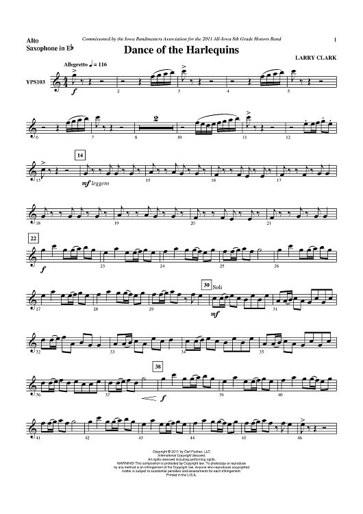 "Dance of the Harlequins - Alto Sax" Sheet Music by Larry Clark