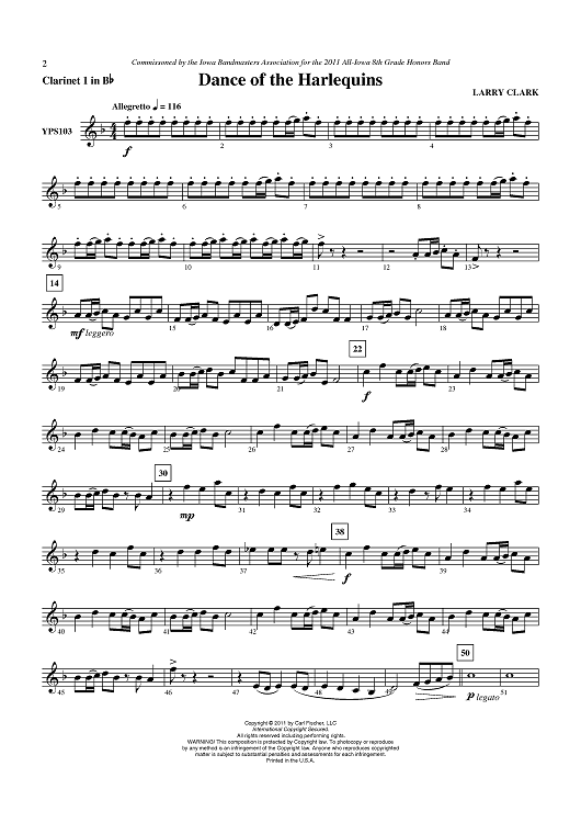 Digital Sheet Music for Dance of the Harlequins - Clarinet 1 in Bb by Larry Clark scored for Concert Band; id:420923