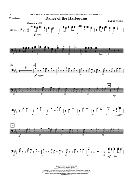 Digital Sheet Music for Dance of the Harlequins - Trombone by Larry Clark scored for Concert Band; id:420933