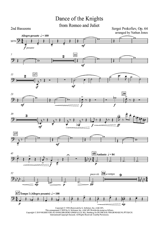 Digital Sheet Music for Dance of the Knights from Romeo and Juliet - Bassoon 2 by Sergei Prokofiev, Nathan Jones scored for Concert Band; id:502666