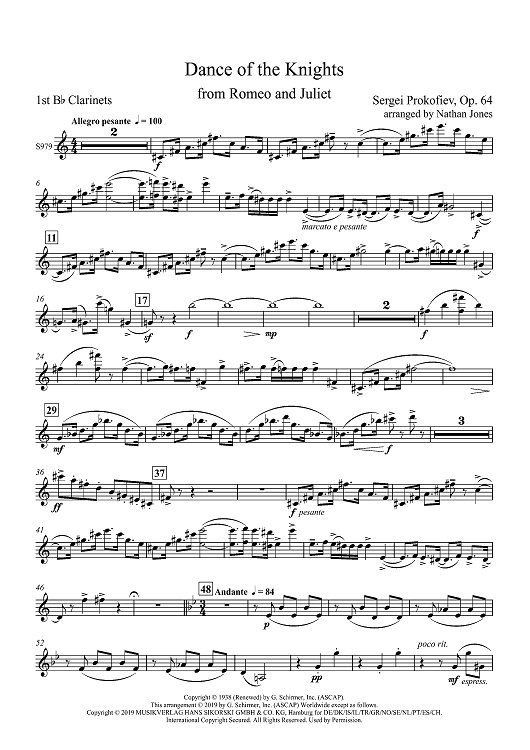 Digital Sheet Music for Dance of the Knights from Romeo and Juliet - Bb Clarinet 1 by Sergei Prokofiev, Nathan Jones scored for Concert Band; id:502660