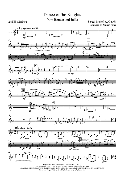 Digital Sheet Music for Dance of the Knights from Romeo and Juliet - Bb Clarinet 2 by Sergei Prokofiev, Nathan Jones scored for Concert Band; id:502661