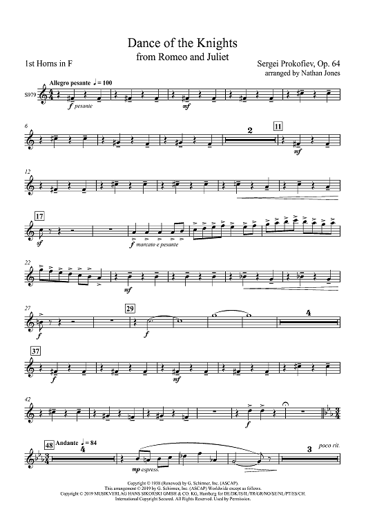 Digital Sheet Music for Dance of the Knights from Romeo and Juliet - F Horn 1 by Sergei Prokofiev, Nathan Jones scored for Concert Band; id:502675